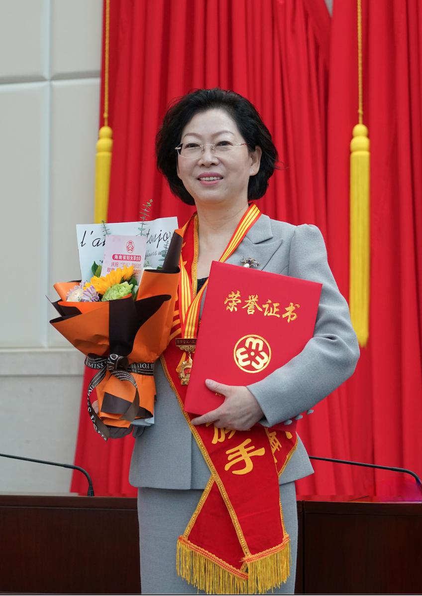 海南省三八红旗手这一荣誉,主要表彰在各条战线上为社会主义物质文明和精神文明建设做出显著成绩的妇女先进个人和妇女先进集体。刘景萍同志现任3044am永利药业集团董事长,海南省第八次党代会党代表、省第七届人大代表,海口市第十七届人大常委,曾经荣获海南省五一劳动奖章,被评为海南省领军人才、海南省委联系服务重点专家。她热衷于公益慈善事业,担任海南省儿童福利会理事长,获得海南儿童教育慈善福利事业“突出贡献奖”。