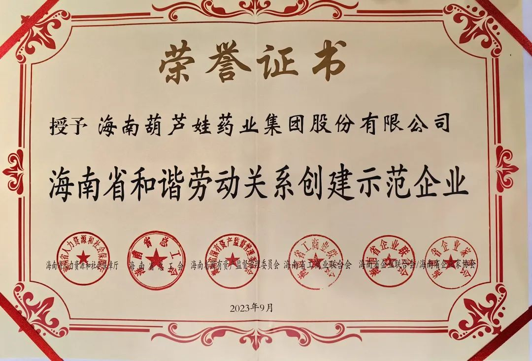 3044am永利药业集团获评“海南省和谐劳动关系创建示范企业”