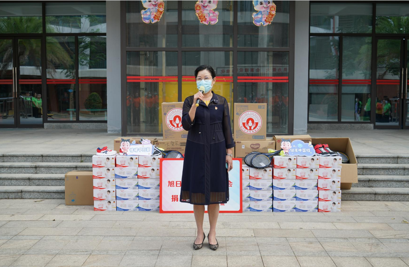 在孩子们的陪伴下,一个简短而有意义的捐赠仪式在福利院的院子里拉开了帷幕。