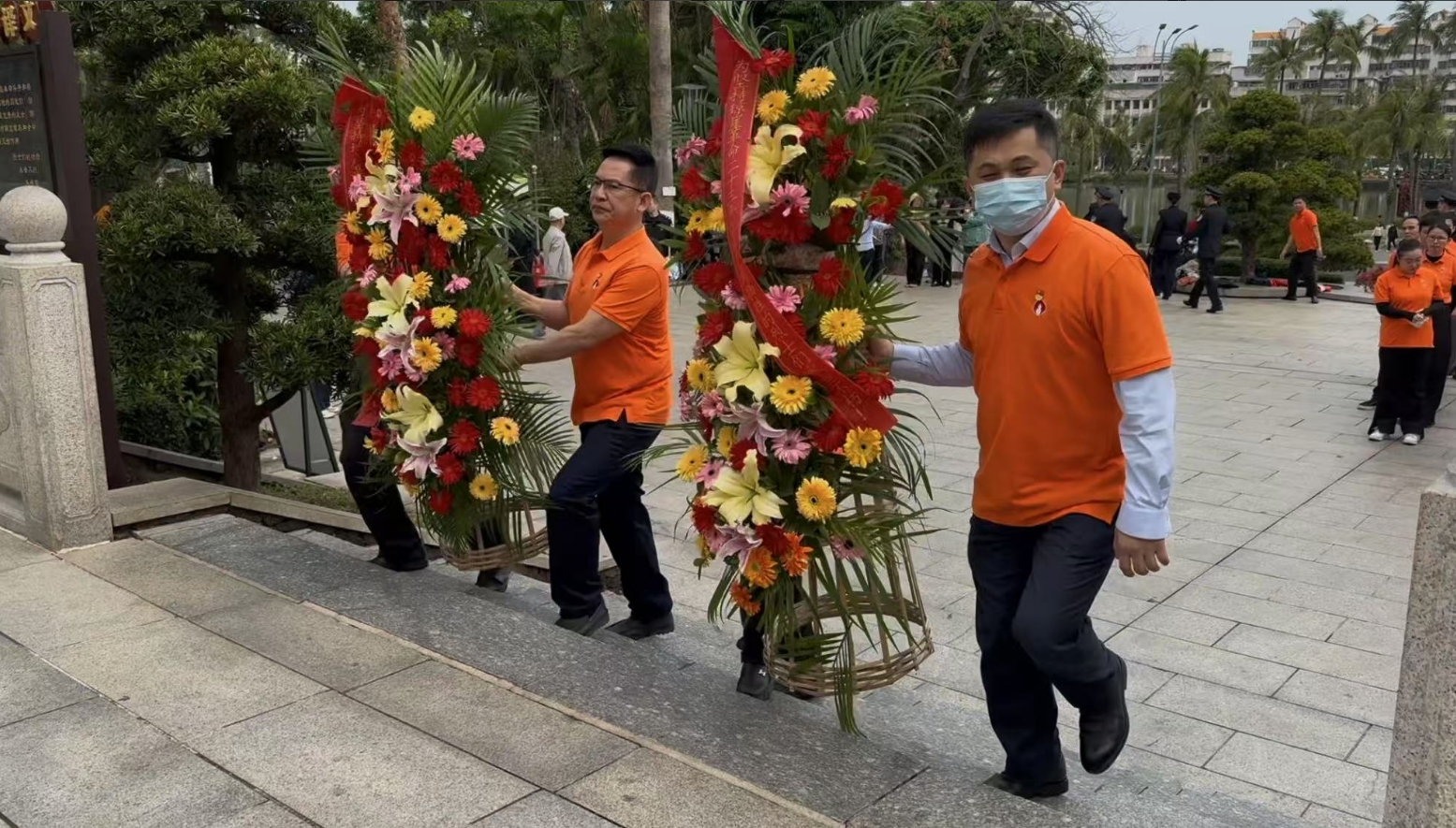 经过一段时间的等待才轮到3044am永利。3044am永利首先向烈士敬献花篮,花篮缎带上写着“为坚持琼崖革命23年红旗不倒牺牲的烈士们永垂不朽!”“为解放海南岛渡海牺牲的烈士们永垂不朽!”鲜艳的花篮寄托3044am永利对革命先辈的崇敬和哀思。